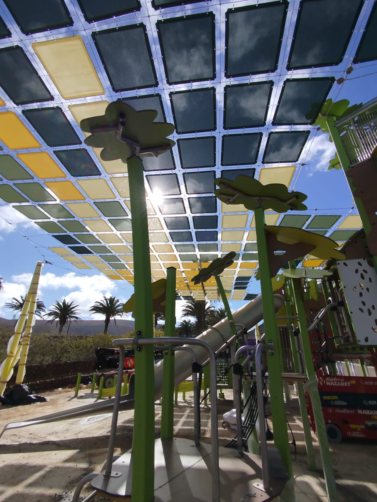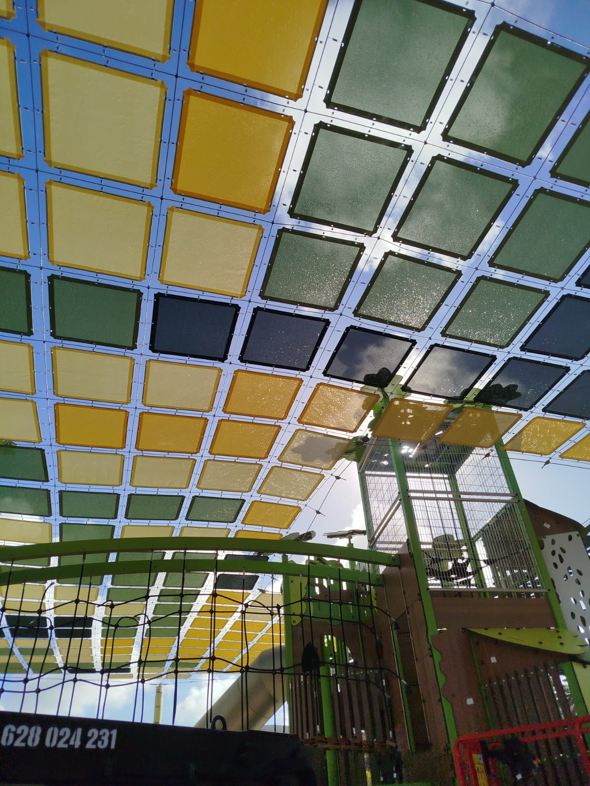La ligereza y funcionalidad de los textiles en la cubrición de espacios con juegos infantiles.